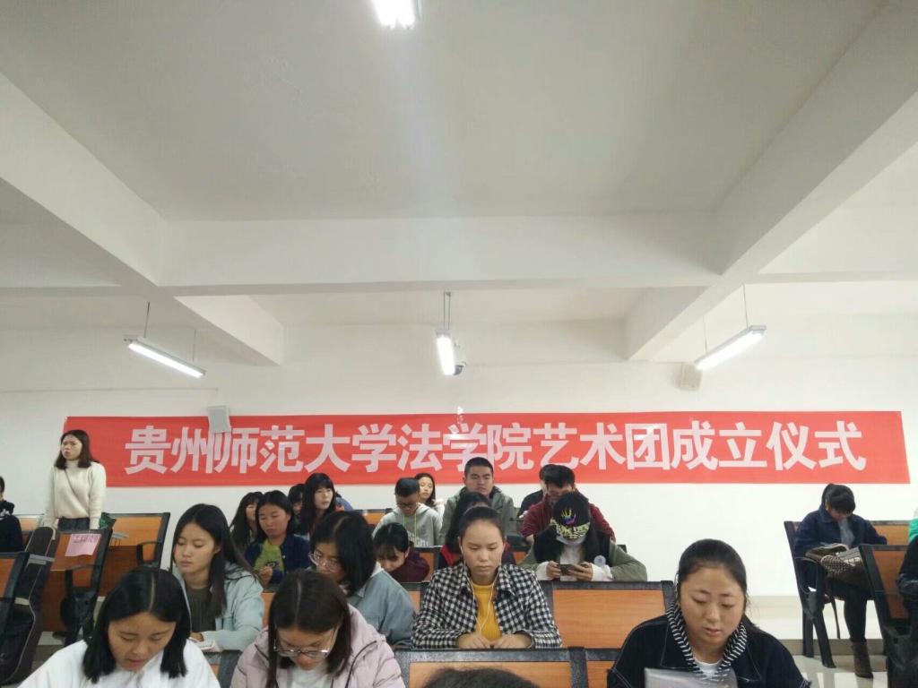 为了促进学生的全面发展,提高同学们的艺术鉴赏力,培养同学们的艺术兴趣。10月18日,法学院于花溪校区GJ5101教室举行了艺术团成立仪式。法学院党委副书记欧秀松,团委副书记何成忠,2017级辅导员徐潇出席本次活动。法学院学生干部以及2017级全体同学参加本次活动。活动由徐潇主持。