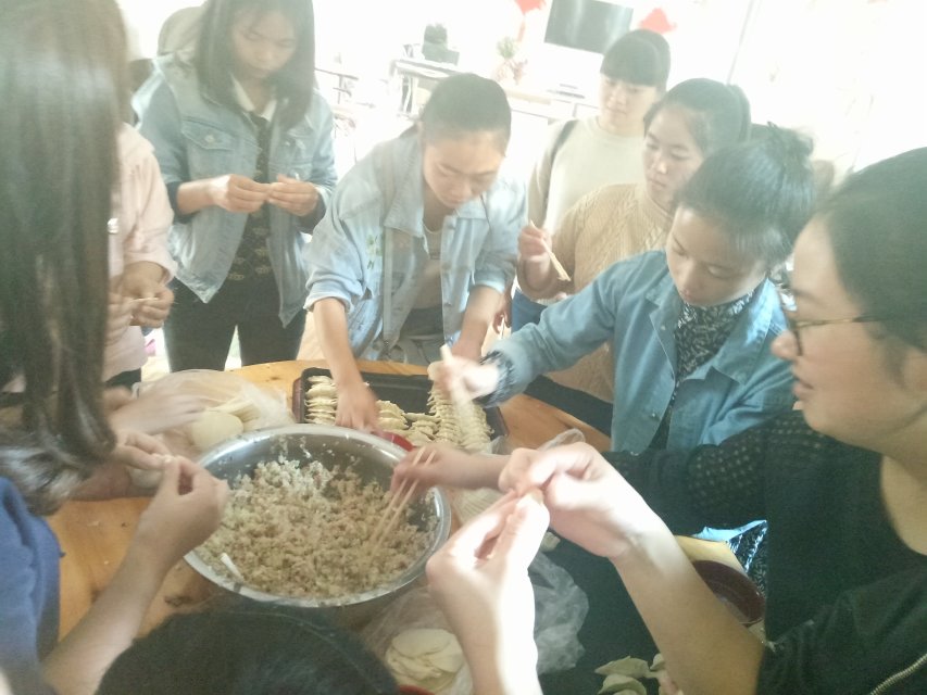 同学们分成了几个小组去陪老人,有的在一楼,有的在二楼。刚开始的时候同学们略显拘谨,场面有一点点尴尬。但随着同学们和老人们熟络起来后,就变得像是亲人一般亲近,又像是多年未见的老友般开怀畅聊。那种温馨,一直是同学们正在探索的宝藏。志愿者们和老人聊天,下棋,活动方式多种多样。大约4点,同学们把自己准备的包饺子的材料拿了出来,挽起袖子就开始包了起来,同学们包的不亦乐乎。