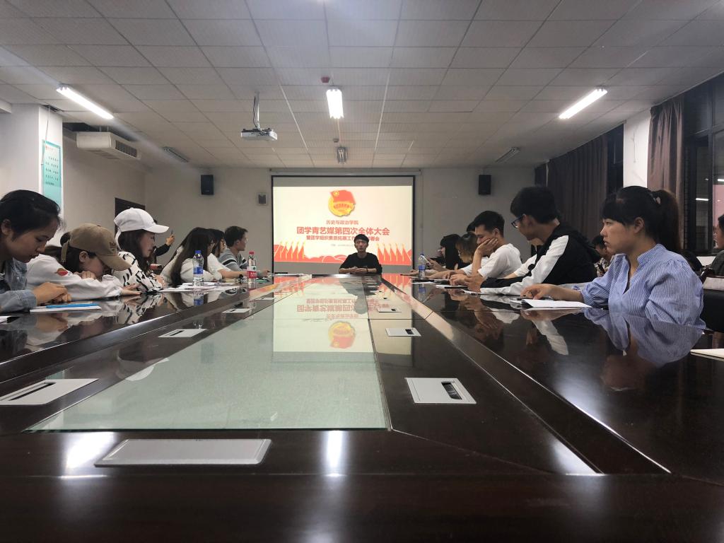 5月23日,历史与政治学院于学院楼二楼会议室召开本学期团学青艺媒第四次全体大会暨团学组织素质拓展工作动员大会,会议由学生会主席龙普杰主持。本次会议主要强调了院团学组织思想建设和组织建设的重要性,并对近期工作做了总结与部署。