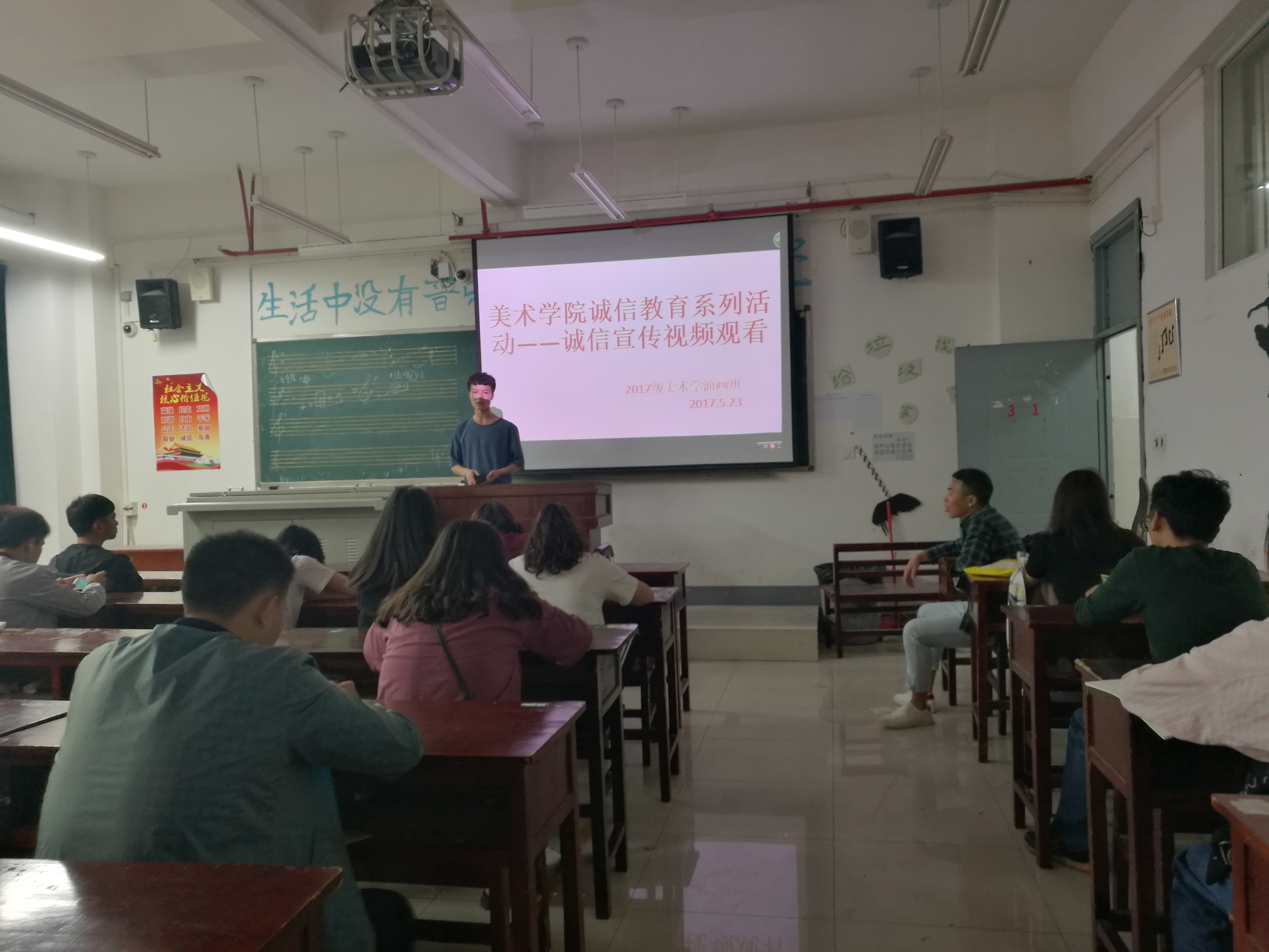 5月25日 17级书法班和17级美术学油画班的同学开展了一次“诚信教育主题班会”。会上同学们观看了诚信相关视频,每位同学纷纷积极发言,与大家分享自己对诚信的理解和一些诚信小故事。让每一位同学都能够参与到诚信教育中来。最后大家纷纷用毛笔书写出关于诚信的名言名句,以此来警醒自己做人诚信的道理。