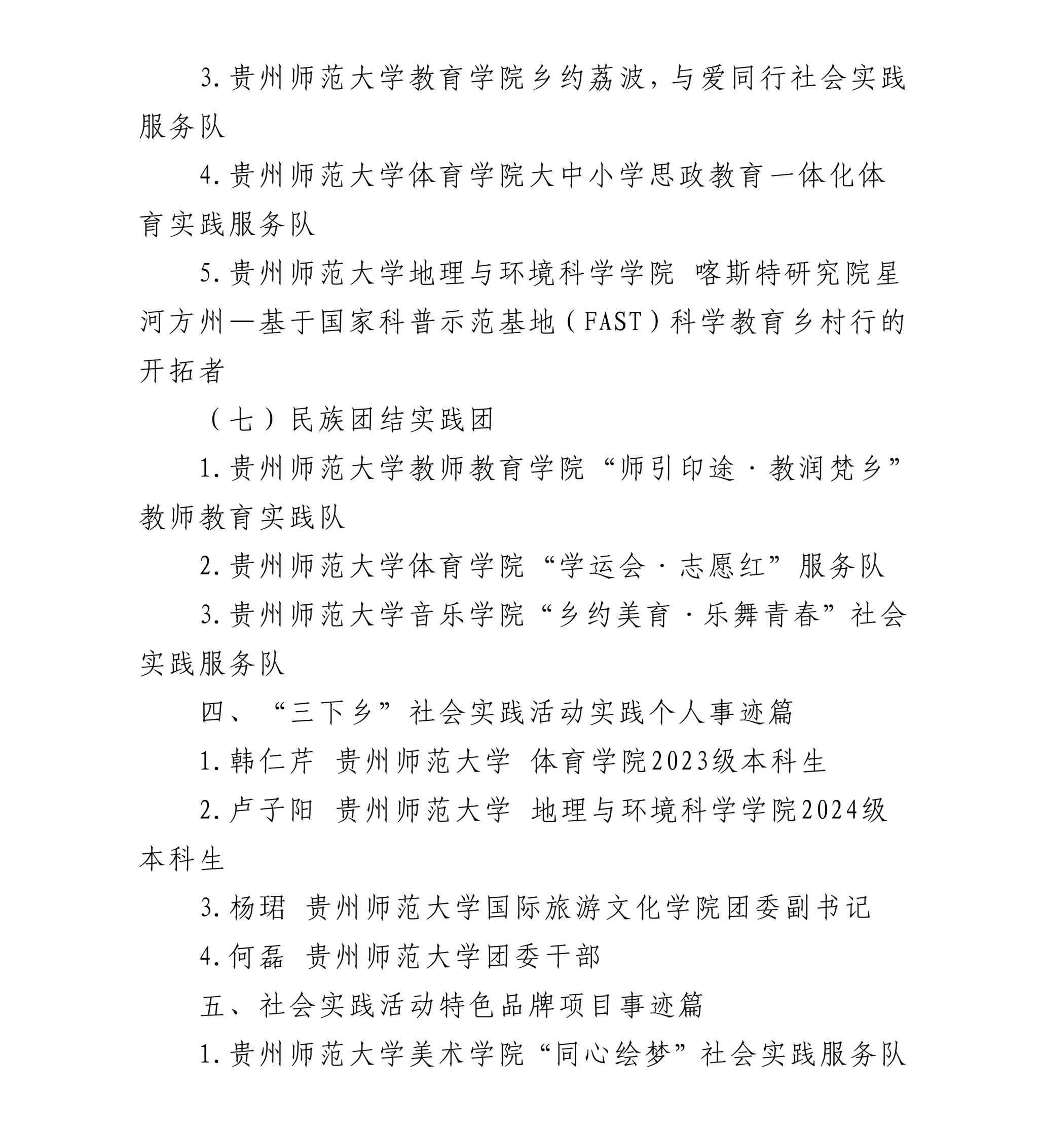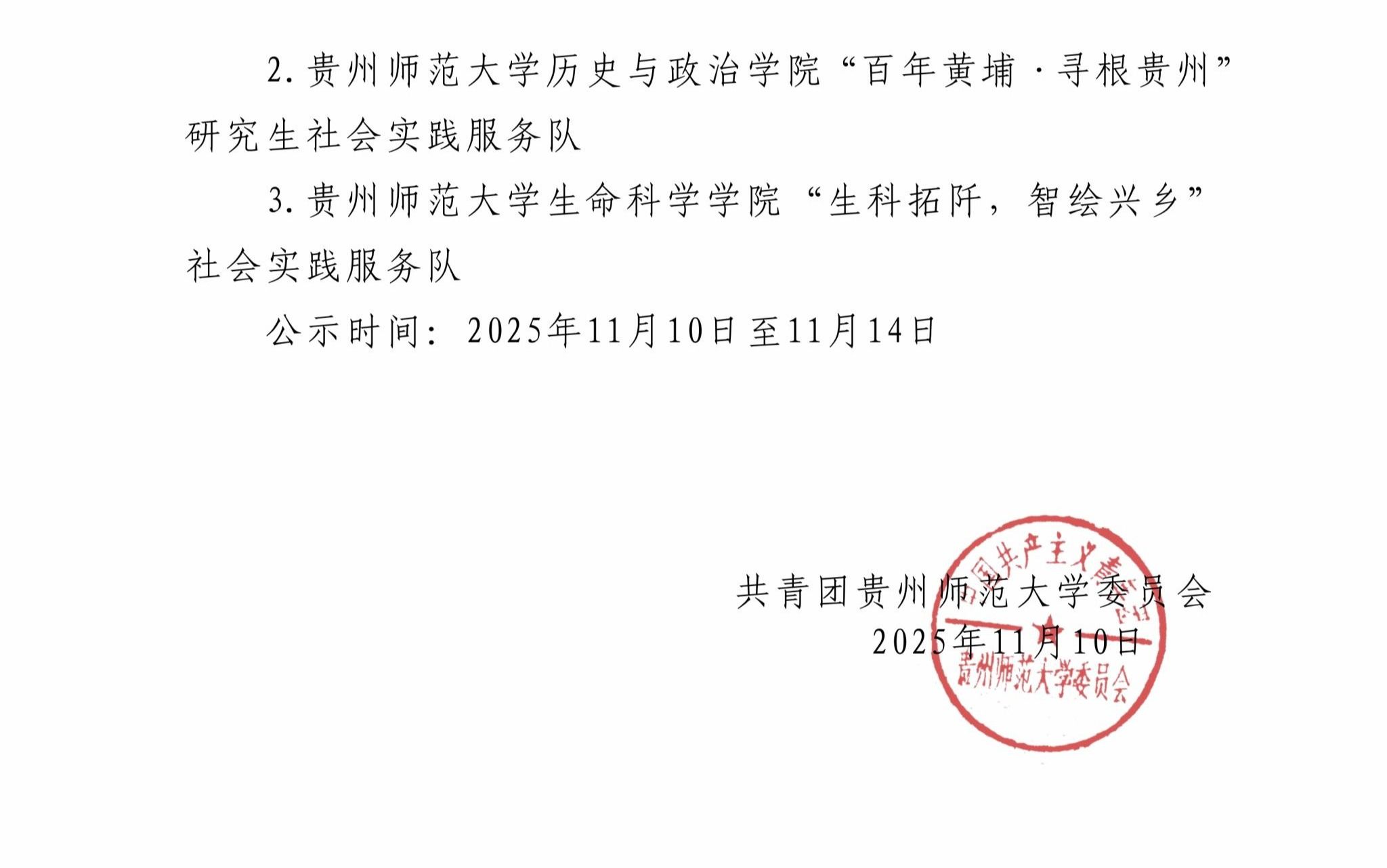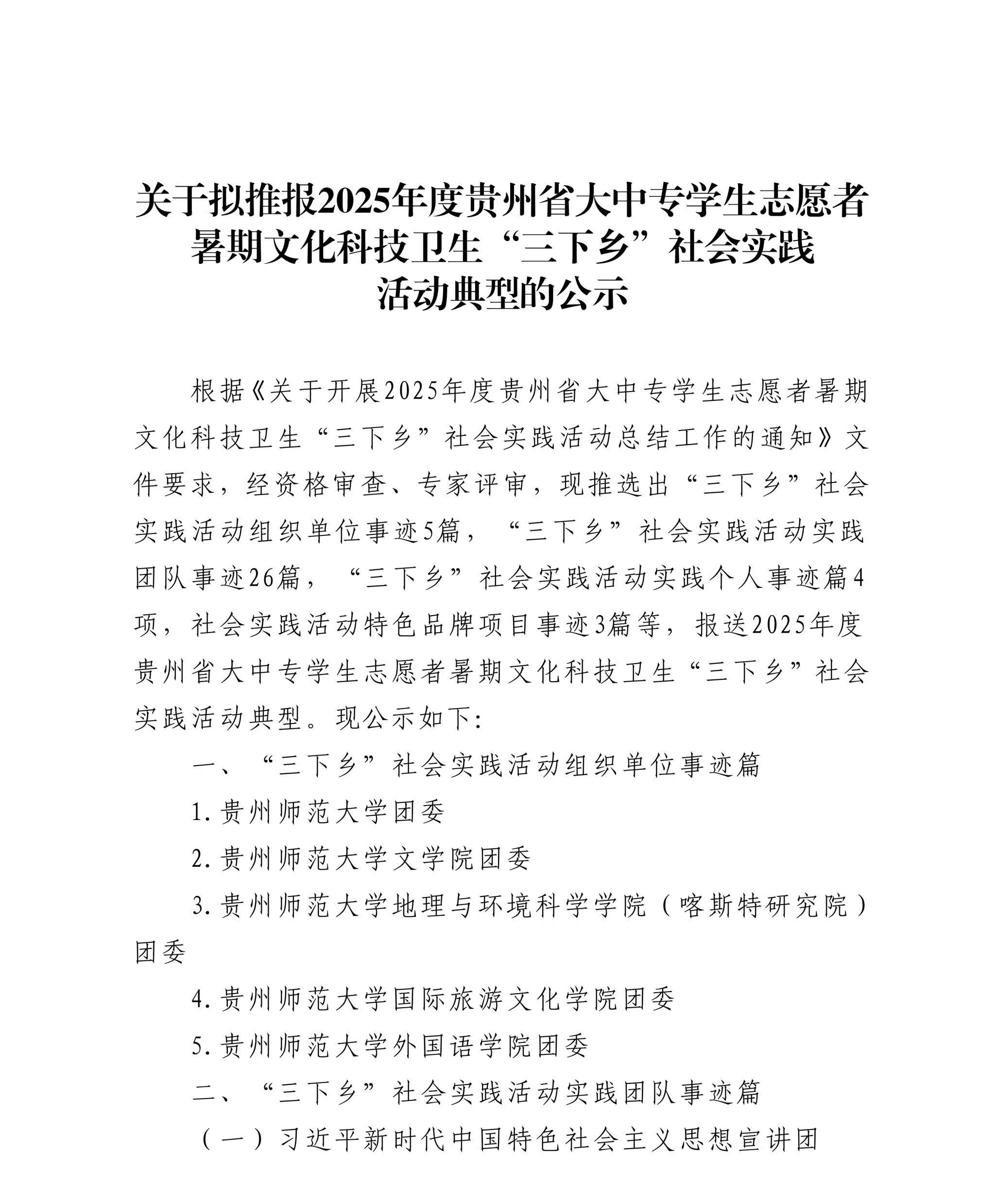 关于拟推报2025年度贵州省大中专学生志愿者暑期文化科技卫生“三下乡”社会实践活动典型的公示